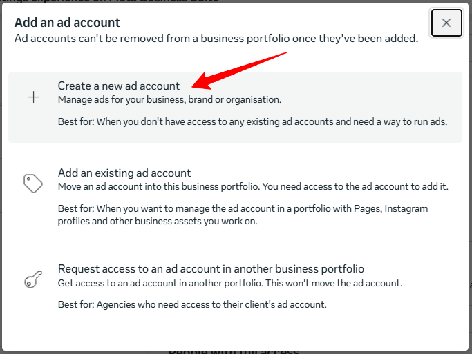 - Select “Create a new ad account”.