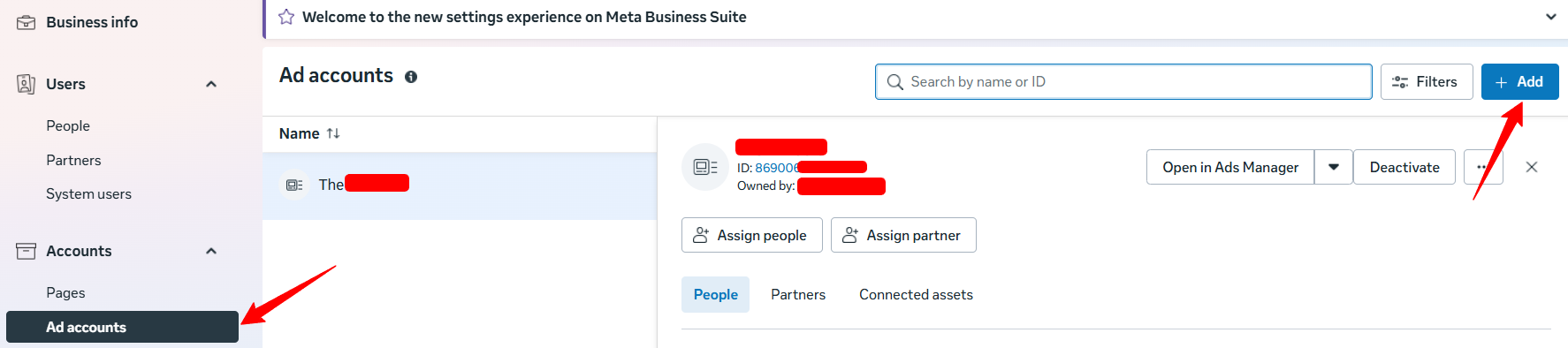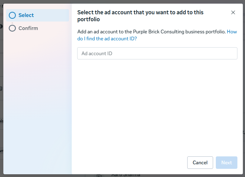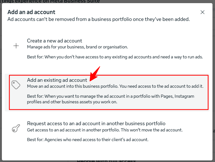 - Choose “Add an ad account”.