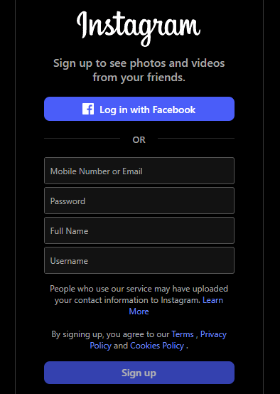 - Go to www.instagram.com/accounts/emailsignup/