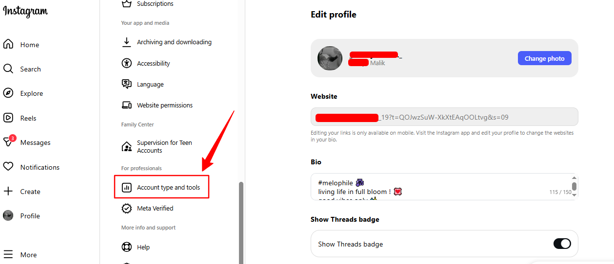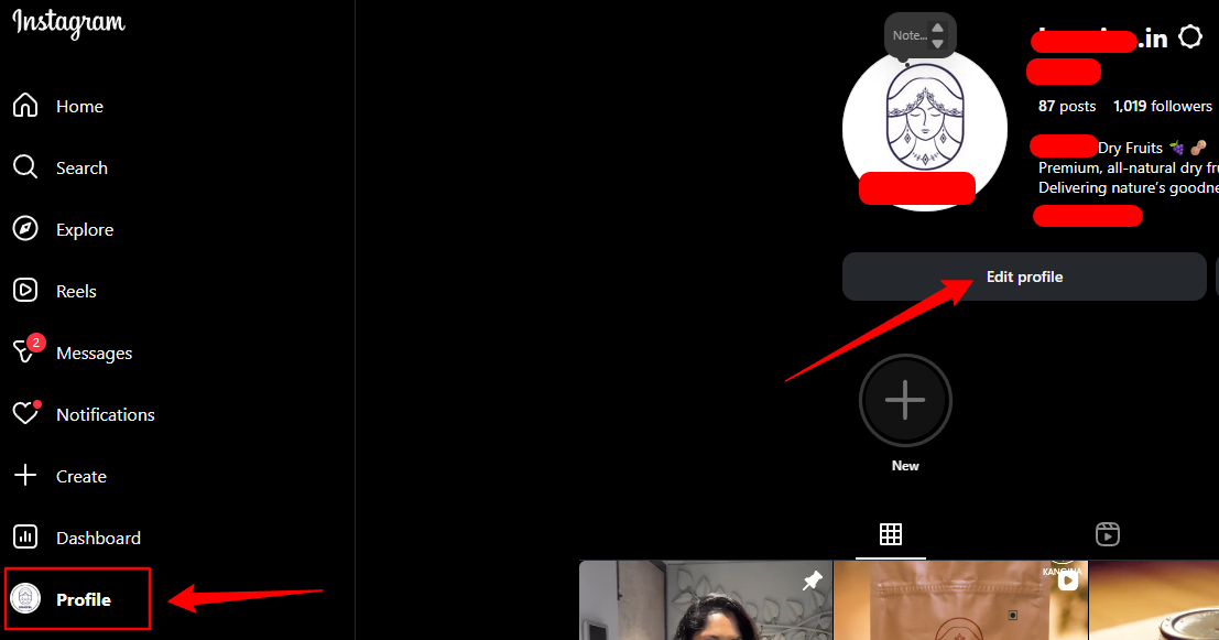- Click on Edit Profile to access the menu.