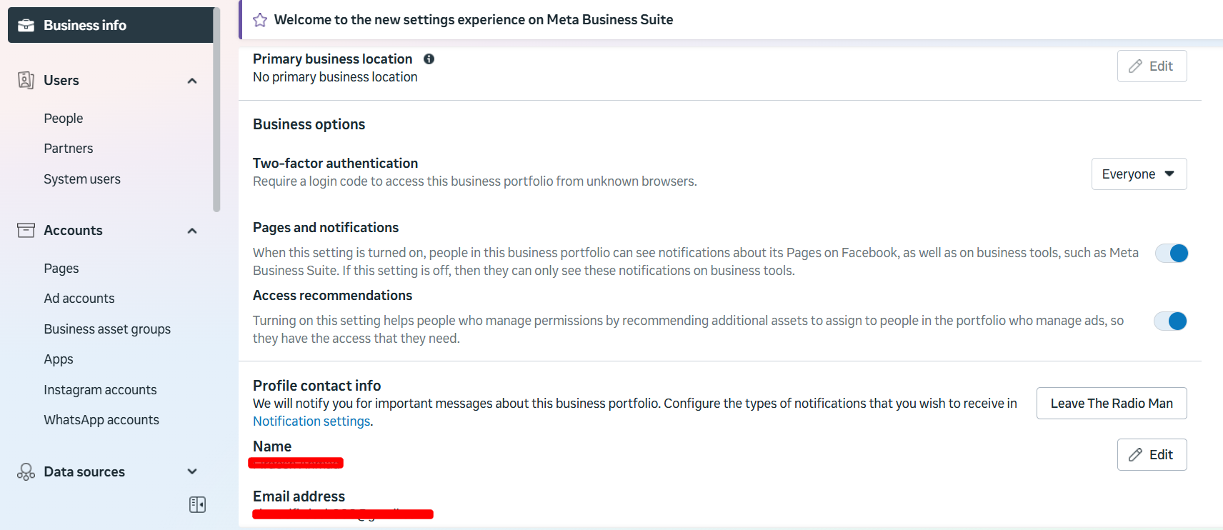 - If you have a business manager, you will see something like this: