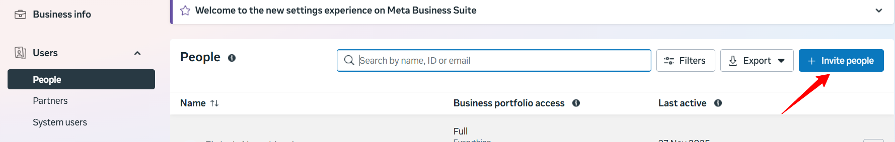 - Open the “Business setting” of your Business Manager. Then go to “Users”.