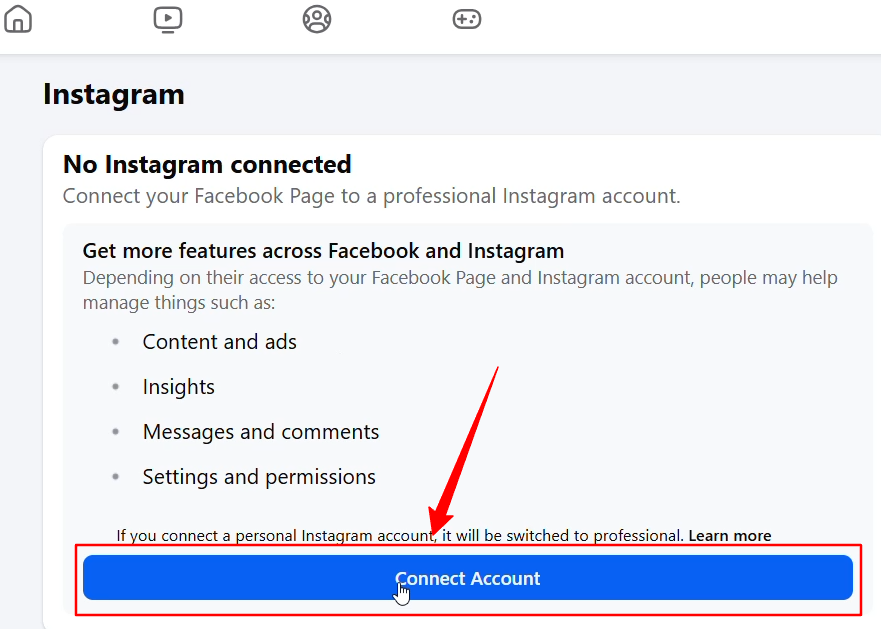 Connect your Instagram Business Page to Facebook Page