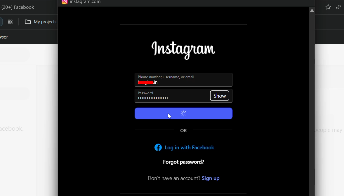 - Now you will see a pop up for logging Instagram. After entering login details,